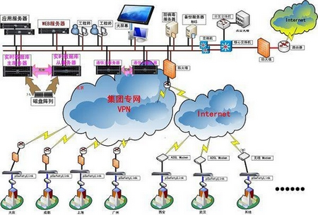 由于各站庫地理位置分散,從站庫接入到調(diào)度中心的網(wǎng)絡通信方式多種多樣。一部分集團公司直屬的站庫采用集團專網(wǎng),集團專網(wǎng)租用電信專線通過VPN實現(xiàn)廣域網(wǎng)傳輸。其它不具備接入集團專網(wǎng)的站庫,則采用ADSL、無線等接入方式通過互聯(lián)網(wǎng)將數(shù)據(jù)傳到中心。最終構(gòu)成的整個指揮調(diào)度系統(tǒng)的網(wǎng)絡結(jié)構(gòu)非常復雜。聯(lián)網(wǎng)后,將導致各站庫的站控網(wǎng)絡直接暴露給集團專網(wǎng)或互聯(lián)網(wǎng)。該集團專網(wǎng)是面向集團內(nèi)各地分公司的辦公網(wǎng)絡,應用數(shù)據(jù)多樣而復雜;互聯(lián)網(wǎng)則更是一個開放網(wǎng)絡。而由各種DCS、PLC、RTU、儀表等控制系統(tǒng)組成的站控系統(tǒng)負責完成對門站、調(diào)壓站、管網(wǎng)的基礎數(shù)據(jù)采集、控制、聯(lián)鎖保護等任務,因此,其控制網(wǎng)絡的安全性非常重要,一旦直接暴露給外網(wǎng),就有可能因受到外網(wǎng)的惡性攻擊、病毒感染而導致控制網(wǎng)絡阻塞、癱瘓,甚至產(chǎn)生破壞和影響生產(chǎn)的嚴重后果。