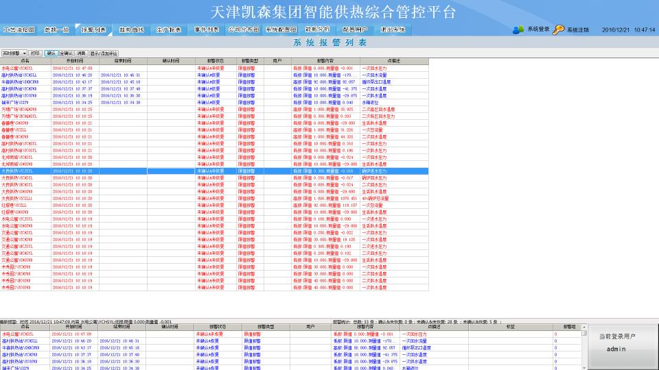 將采集的數據進行歸納、分析和整理,實現基礎熱力管理功能,包括各個供熱站和換熱站的二次供水溫度、二次回水溫度等重要對比數據,以便可以更好地進行片區同類供熱區域供熱效率進行直觀有效地比對,從而能指導運行人員進行查找原因和后續改進。