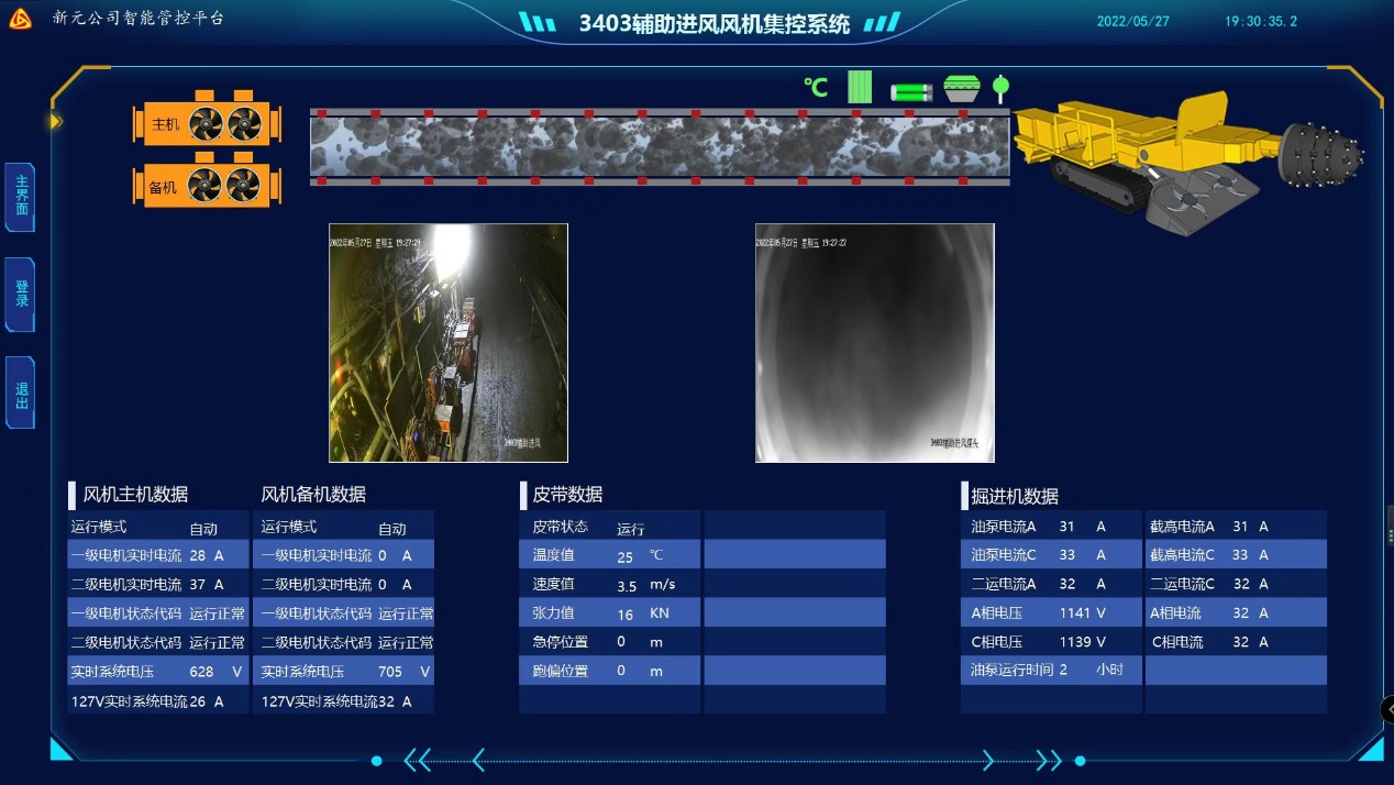 新元公司綜合管控平臺采用力控家族組態(tài)軟件,采用數(shù)據(jù)采集與歷史存儲雙冗余架構(gòu),保證了遠程監(jiān)控可靠穩(wěn)定運行,實現(xiàn)了主運輸皮帶、局部通風(fēng)機遠程、綜采工作面、主通風(fēng)機集中監(jiān)控;實現(xiàn)了配電室、井下水倉、瓦斯泵站、壓風(fēng)機等系統(tǒng)無人值守,在管控一體化思想的指導(dǎo)下,結(jié)合工業(yè)自動化技術(shù)、信息化技術(shù)、移動和固定網(wǎng)絡(luò)通信技術(shù)等一系列現(xiàn)代化手段,實現(xiàn)生產(chǎn)過程自動控制和監(jiān)測;同時增加了手機移動端的開發(fā),方便管理人員隨時查看井下設(shè)備的運行情況,提高了管理人員對現(xiàn)場的把控能力,實現(xiàn)了安全和效益的雙提升。