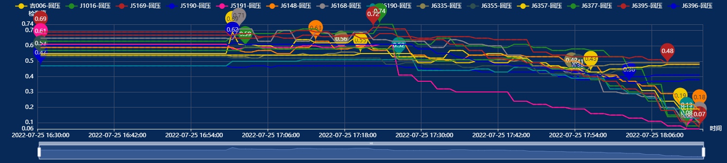 生產(chǎn)數(shù)據(jù)報警包括通訊故障報警、異常停機報警、參數(shù)超限報警三個報警,通過常規(guī)高低限設定、多條件組合報警設定、同A2日報標準值變化率報警設定三種方式,實現(xiàn)全面監(jiān)控油田生產(chǎn)過程,通過平臺預設邏輯判斷,幫助運維管理人員精準定位故障原因及故障環(huán)節(jié),快速解決問題,恢復正常生產(chǎn)。