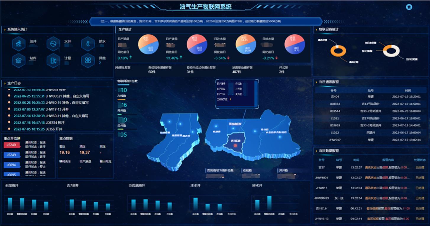 基于基礎數(shù)據(jù)的收集,將信息數(shù)字化呈現(xiàn)。對油井、注水、摻水、計量、站庫、輸油的所有控制參數(shù)、測量參數(shù)進行實時監(jiān)測,分析生產(chǎn)系統(tǒng)各部位的運行狀態(tài)。此外針對每個生產(chǎn)環(huán)節(jié),重要裝置,系統(tǒng)提供精細化的數(shù)據(jù)實時監(jiān)控;使平臺管理者和具體操作人員無需實時巡視現(xiàn)場也可清晰準確獲知現(xiàn)場工況信息。