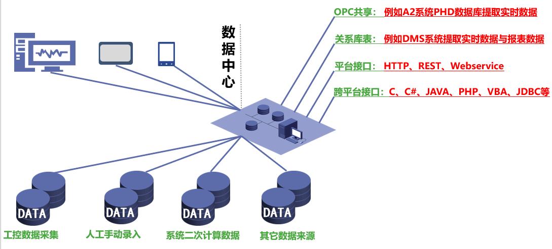 在生產(chǎn)數(shù)據(jù)管理系統(tǒng)的建設中,力控科技完整的產(chǎn)品體系可以為用戶提供精準的產(chǎn)品服務。本次項目建設中按照用戶實際需求,從數(shù)據(jù)采集架構、數(shù)據(jù)存儲容量、應用軟件功能三方面進行了產(chǎn)品線的整合以及開發(fā),建成了一套數(shù)據(jù)采集、存儲、應用、共享系統(tǒng)。