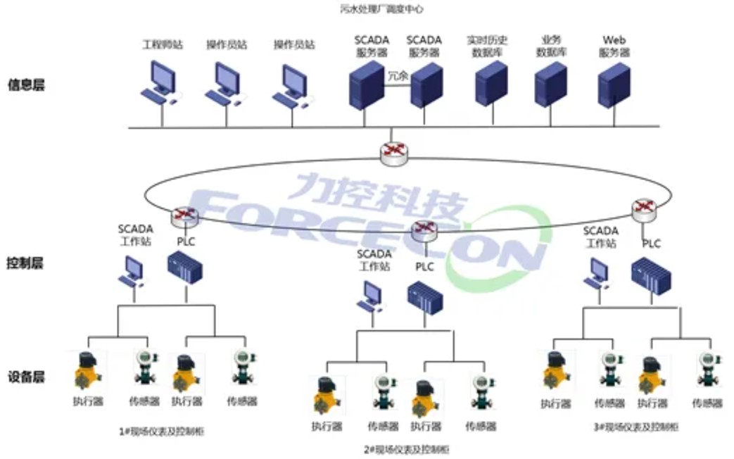 通過(guò)光纖總線網(wǎng)絡(luò)構(gòu)建SCADA系統(tǒng)與分控PLC網(wǎng)絡(luò)通訊,實(shí)現(xiàn)實(shí)時(shí)數(shù)據(jù)通訊。