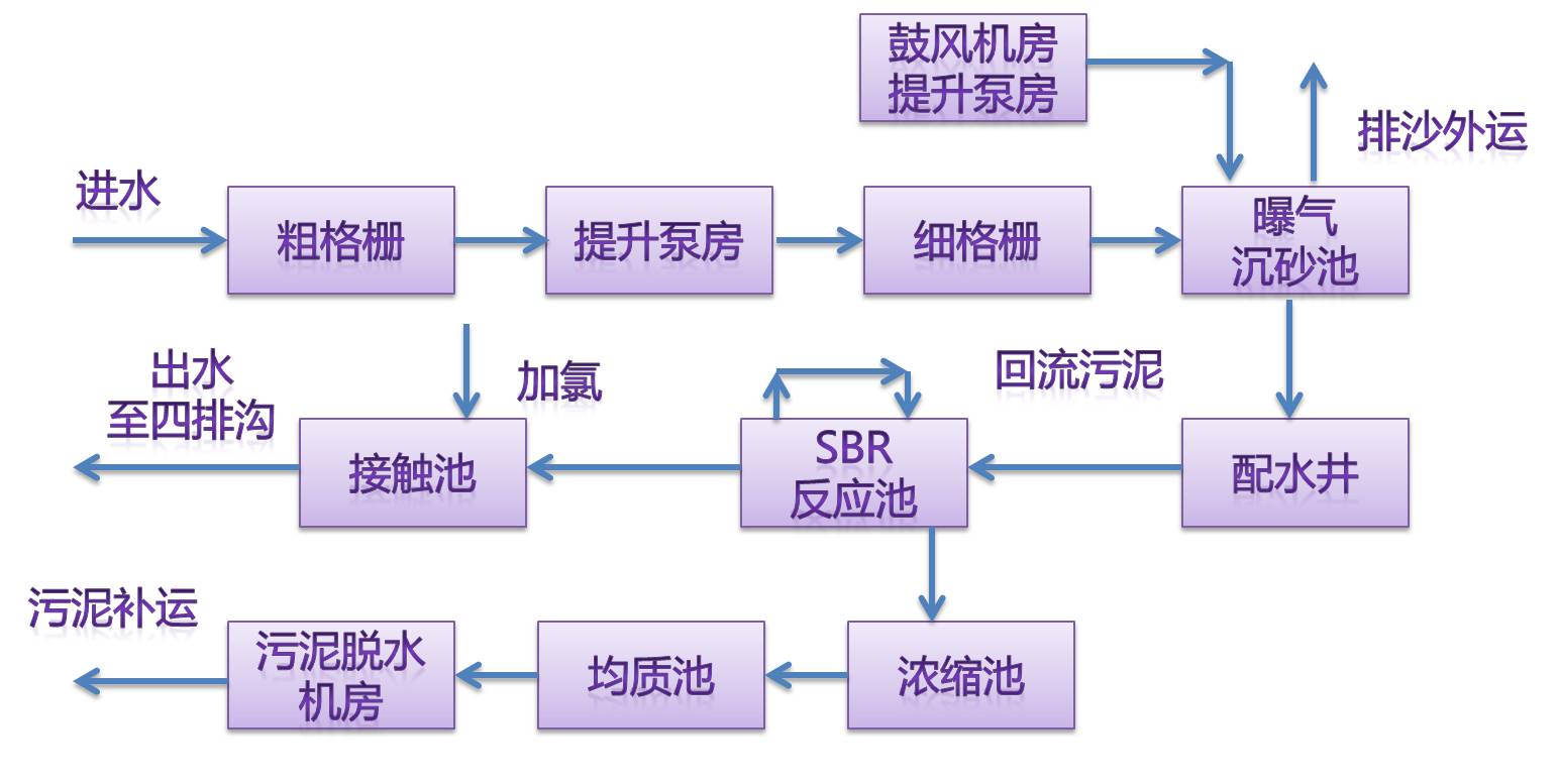 以昌黎污水廠為例,簡要介紹污水處理工藝流程。昌黎縣污水處理廠是被國家列入“三河三湖”、“渤海碧海”水污染治理的重點項目。日處理污水能力達到4萬噸,污水處理后可達到《城鎮污水處理廠污染物排放標準》一級A標準,排放水質可直接用于農田灌溉。初步污水處理工藝采用MSBR工藝即序批式活性污泥處理工藝;污泥處理工藝推薦采用帶式濃縮、脫水一體機濃縮脫水;消毒工藝采用紫外線消毒。污水經處理后作為中水排入附近深化處理塘進行自然凈化,最終全部回用。該項目投入運營后,每年可以減少近千萬噸的污水排放量,不僅大大改善該縣城區居民的居住環境,而且對改善該縣及周邊地區的海域水質起到關鍵性的作用,對縣域經濟社會的可持續發展具有重要意義。