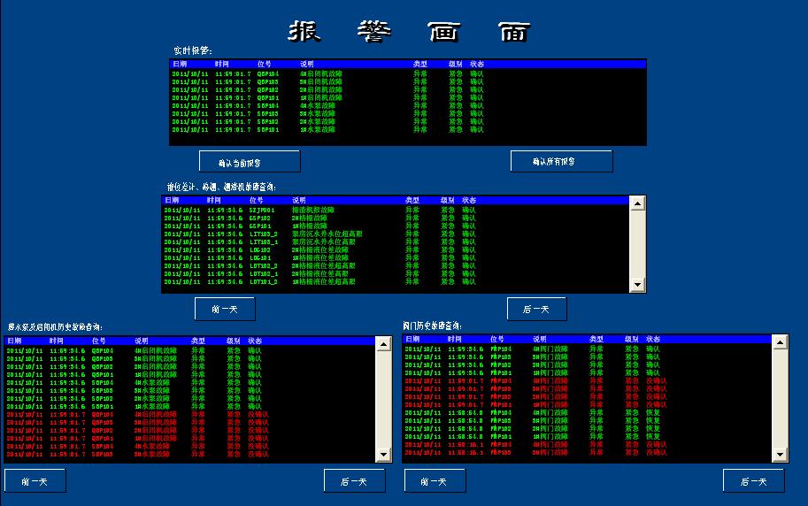 為了讓操作人員迅速而準確地得到過程中異常情況的信息,該系統(tǒng)支持完善的報警監(jiān)測和管理功能,顯示當前所有正在進行的過程參數(shù)報警和系統(tǒng)硬件報警。報警有多種顯示方法可選,按照時間、日期、優(yōu)先級等多種選擇。