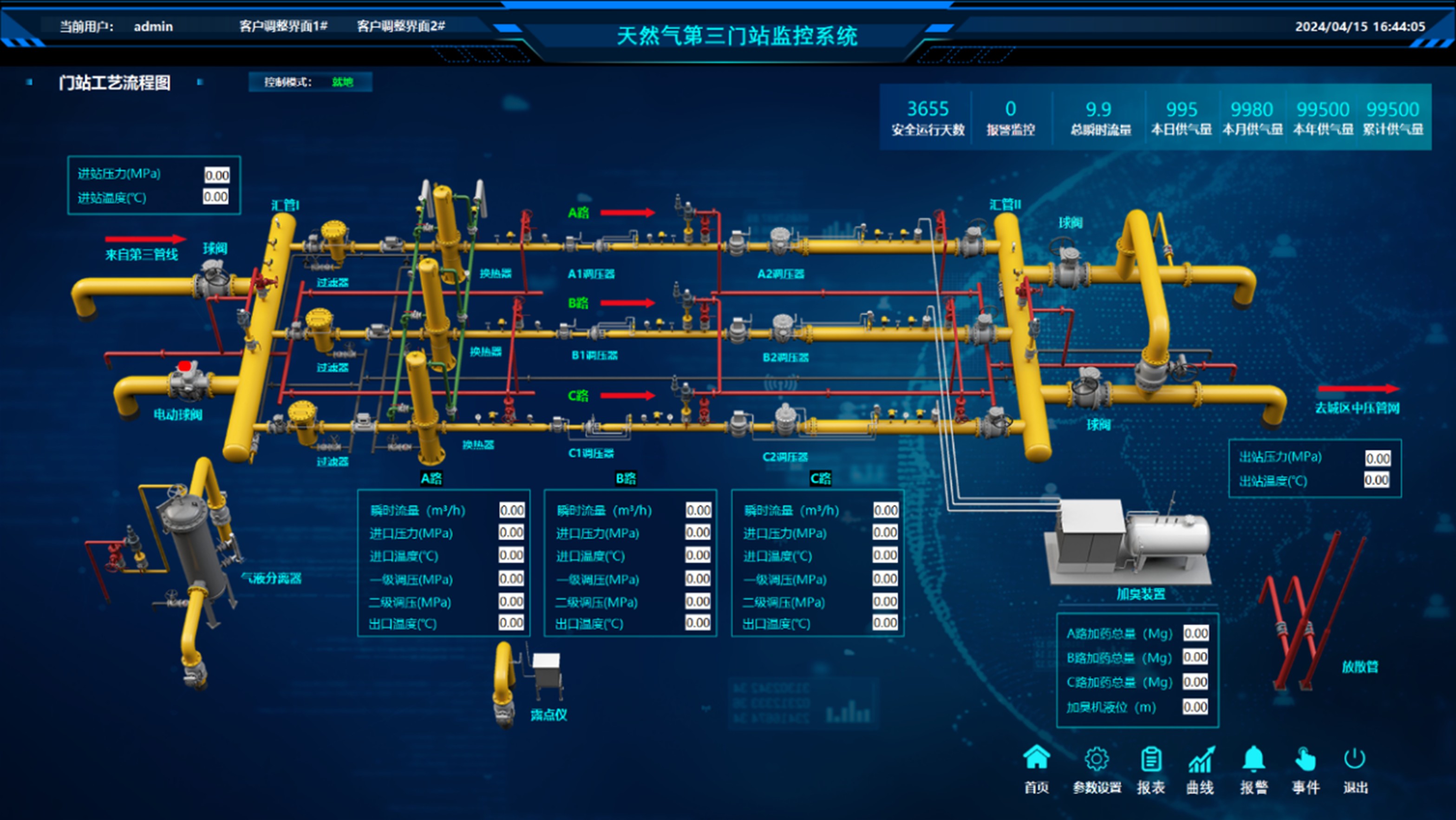 操作人員可以根據(jù)管網(wǎng)輸配氣的需要,下達調(diào)度指令至各SCS站,或遠程調(diào)節(jié)調(diào)壓閥開度、啟停壓縮機等設(shè)備,指令執(zhí)行狀態(tài)實時反饋至監(jiān)控界面,確保閉環(huán)管理。