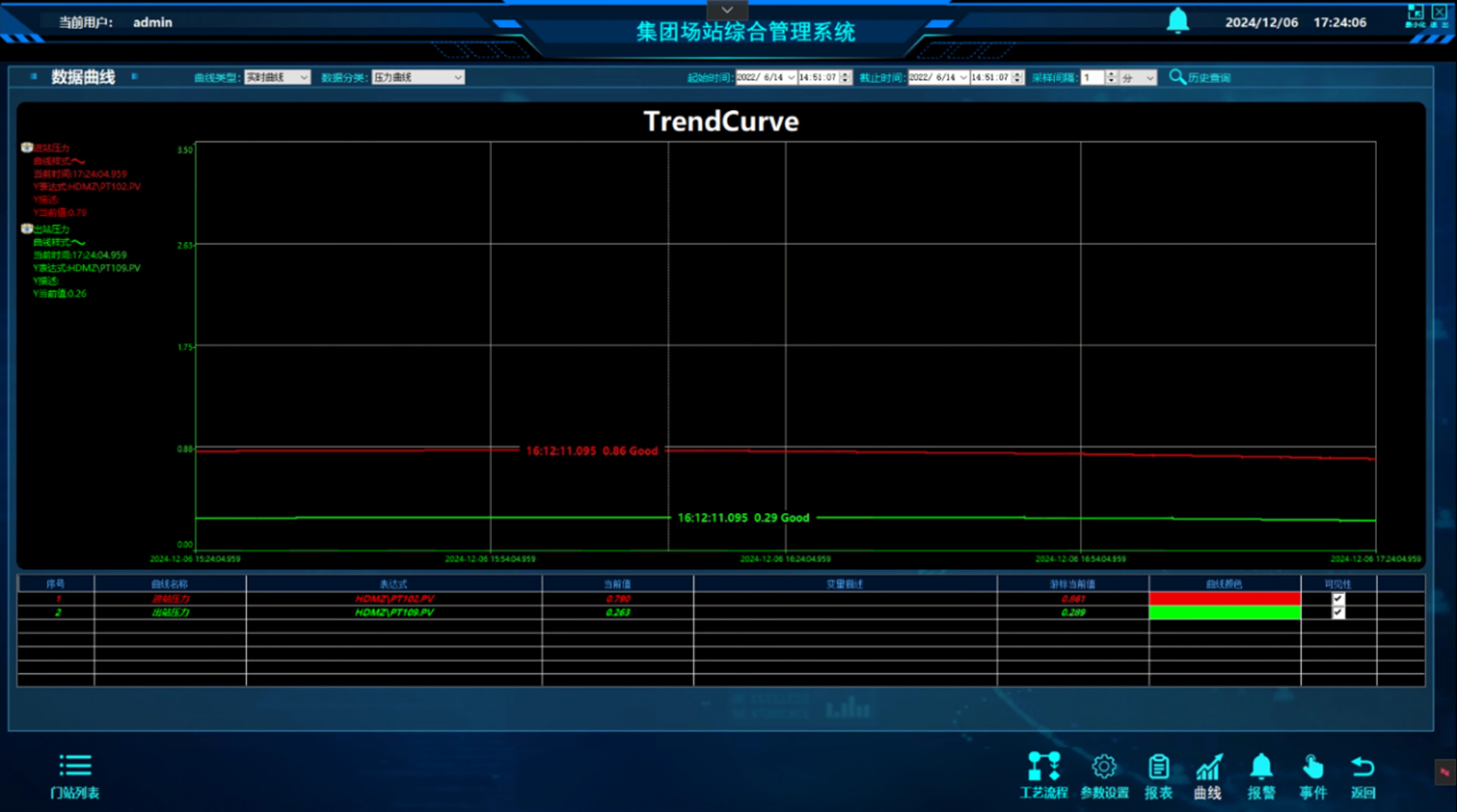 系統(tǒng)提供自定義時間段的趨勢曲線功能,可對比分析壓力、流量等參數(shù)的實時值與歷史數(shù)據(jù),快速定位故障發(fā)生時間及演變趨勢。