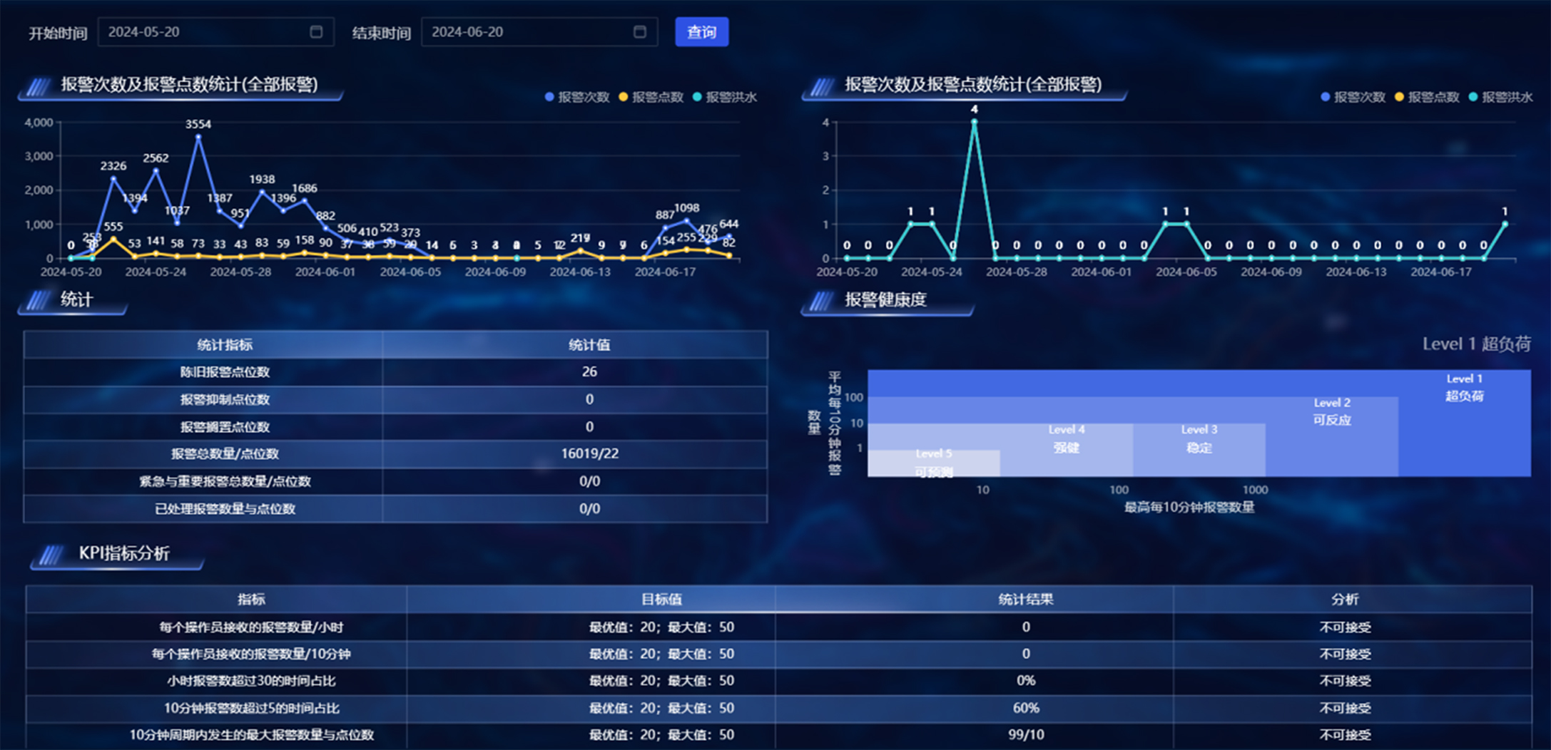 多維度統計分析報警記錄時長、次數、趨勢、企業/生產部門/裝置/班組等信息;