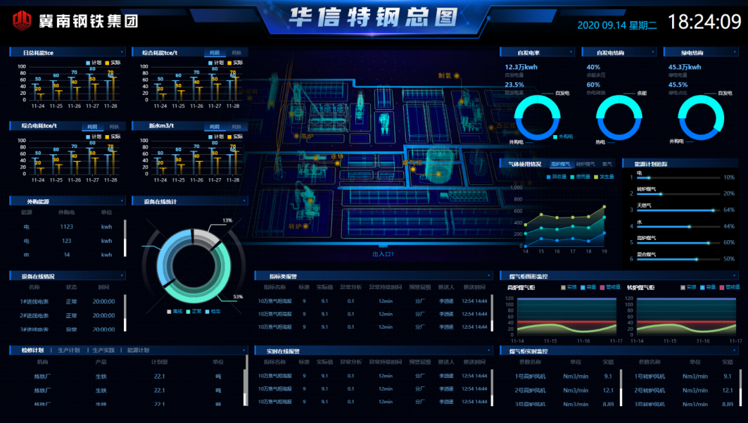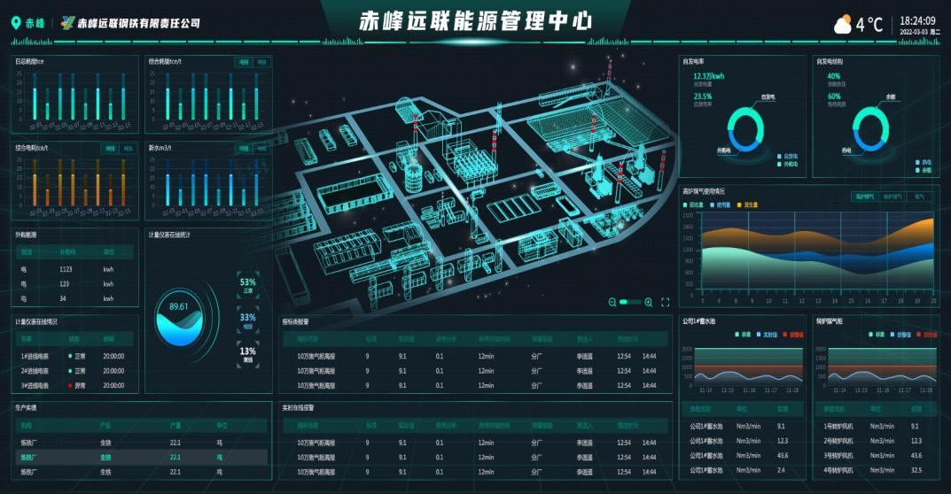 大屏看板,可將企業能源消耗、能源績效、用能成本等核心數據集中展示。