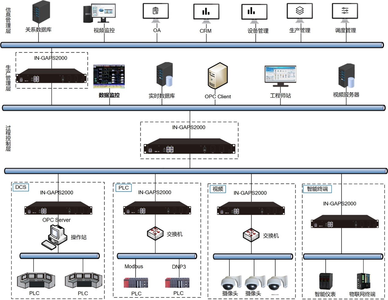 在工業(yè)網(wǎng)絡(luò)中存在很多關(guān)系數(shù)據(jù)庫系統(tǒng)、視頻監(jiān)控系統(tǒng),是用來完成特定生產(chǎn)、監(jiān)控任務(wù)的應(yīng)用系統(tǒng),其自身沒有任何的安全防護(hù)措施,一旦這些重點系統(tǒng)受到惡意攻擊或者有人為誤操作的影響,將會直接危及整個生產(chǎn)過程,影響生產(chǎn)安全,甚至發(fā)生事故。IN-GAPS 2000的雙獨立主機(jī)系統(tǒng)保持OPC Server、Modbus設(shè)備、DNP3設(shè)備、關(guān)系數(shù)據(jù)庫、視頻監(jiān)控等和上層間的通信,同時兩主機(jī)之間采用專用網(wǎng)絡(luò)隔離技術(shù),在保證數(shù)據(jù)快速交互的同時阻斷所有網(wǎng)絡(luò)連接,保證了控制設(shè)備的安全。