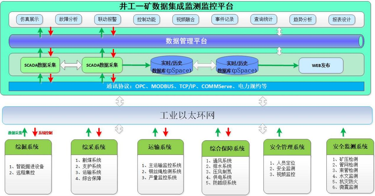 煤礦數(shù)據(jù)集成監(jiān)測監(jiān)控平臺通過各子系統(tǒng)的數(shù)據(jù)采集、轉(zhuǎn)換、傳輸、顯示與存儲。徹底解決了“信息孤島”現(xiàn)象,其穩(wěn)定、可靠、高速、多平臺的真正融合在實際應用中得到了較為理想的綜合顯示效果。