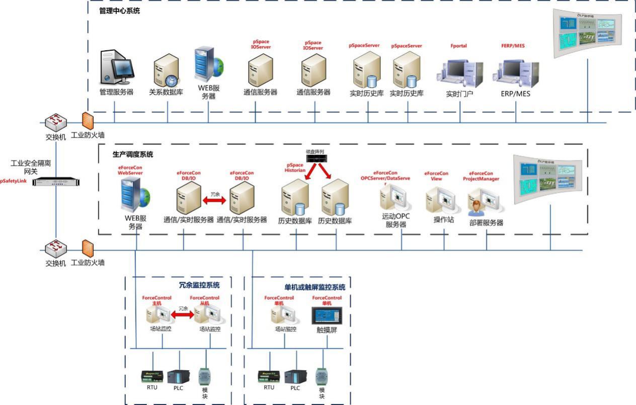 實現(xiàn)與現(xiàn)場各子系統(tǒng)平臺的對接,采用標準的OPC、數(shù)據(jù)庫軟件接口規(guī)范和協(xié)議。