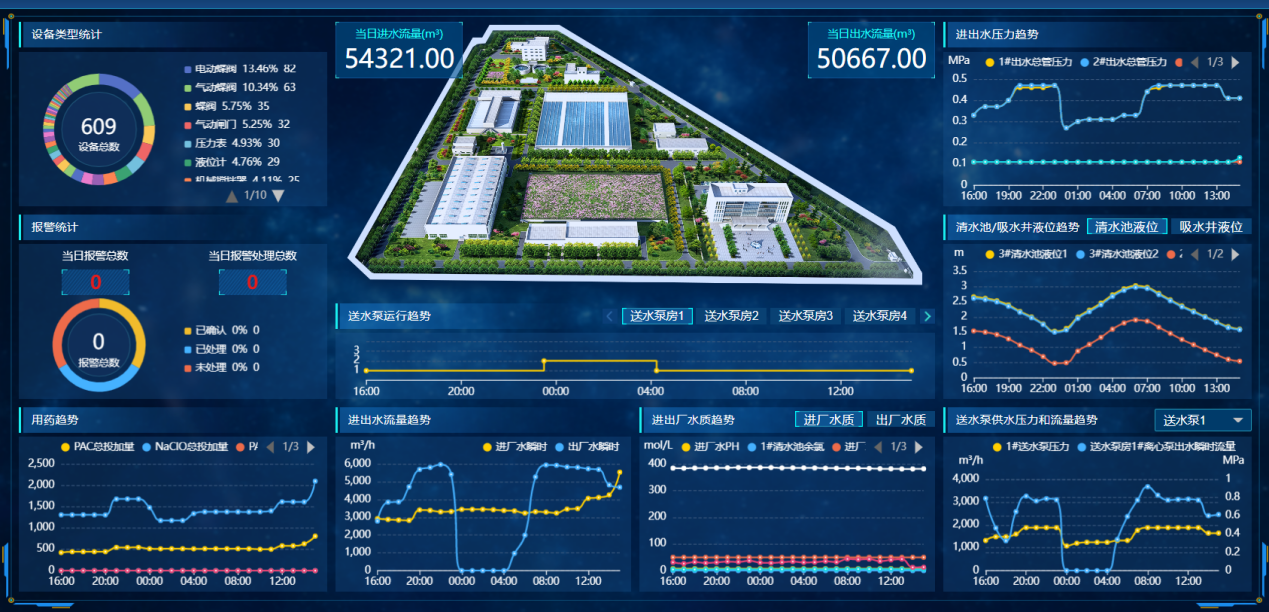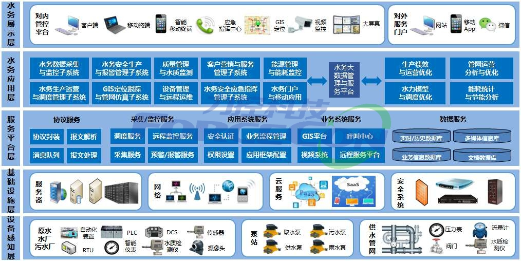 力控水務(wù)集團智慧水務(wù)系統(tǒng)具備自動信息采集、及時信息傳遞、高度集中管控、數(shù)據(jù)挖掘分析的能力,在整個企業(yè)信息化系統(tǒng)中對各設(shè)備子系統(tǒng)進行統(tǒng)一的監(jiān)測、控制和管理,打破數(shù)據(jù)信息孤島,加強集團對所屬自來水廠、污水廠、泵站、管網(wǎng)的管控力度,極大的提升企業(yè)的管理水平,保證供水工作的科學(xué)性,提供數(shù)據(jù)分析,及時發(fā)現(xiàn)運行故障。從而提高維護效率,降低損失、保障輸水、供水質(zhì)量,達(dá)到科學(xué)預(yù)警,減少成本,提高效率的目的。為水務(wù)企業(yè)生產(chǎn)、經(jīng)營、服務(wù)、管理提供服務(wù)決策支撐。