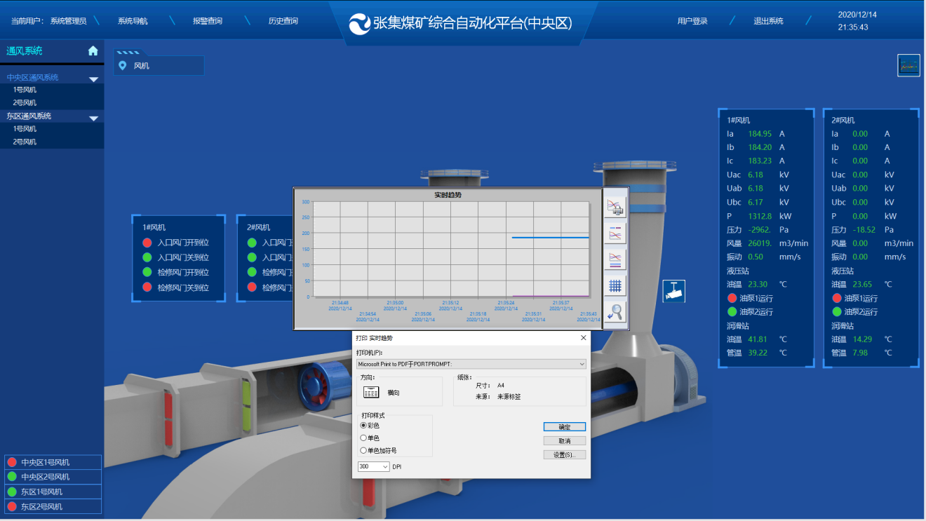 平臺系統集成了井上下所有的安全、生產、通信、動態目標類系統,數據實現了融合,同時向數據中心發送所有數據
