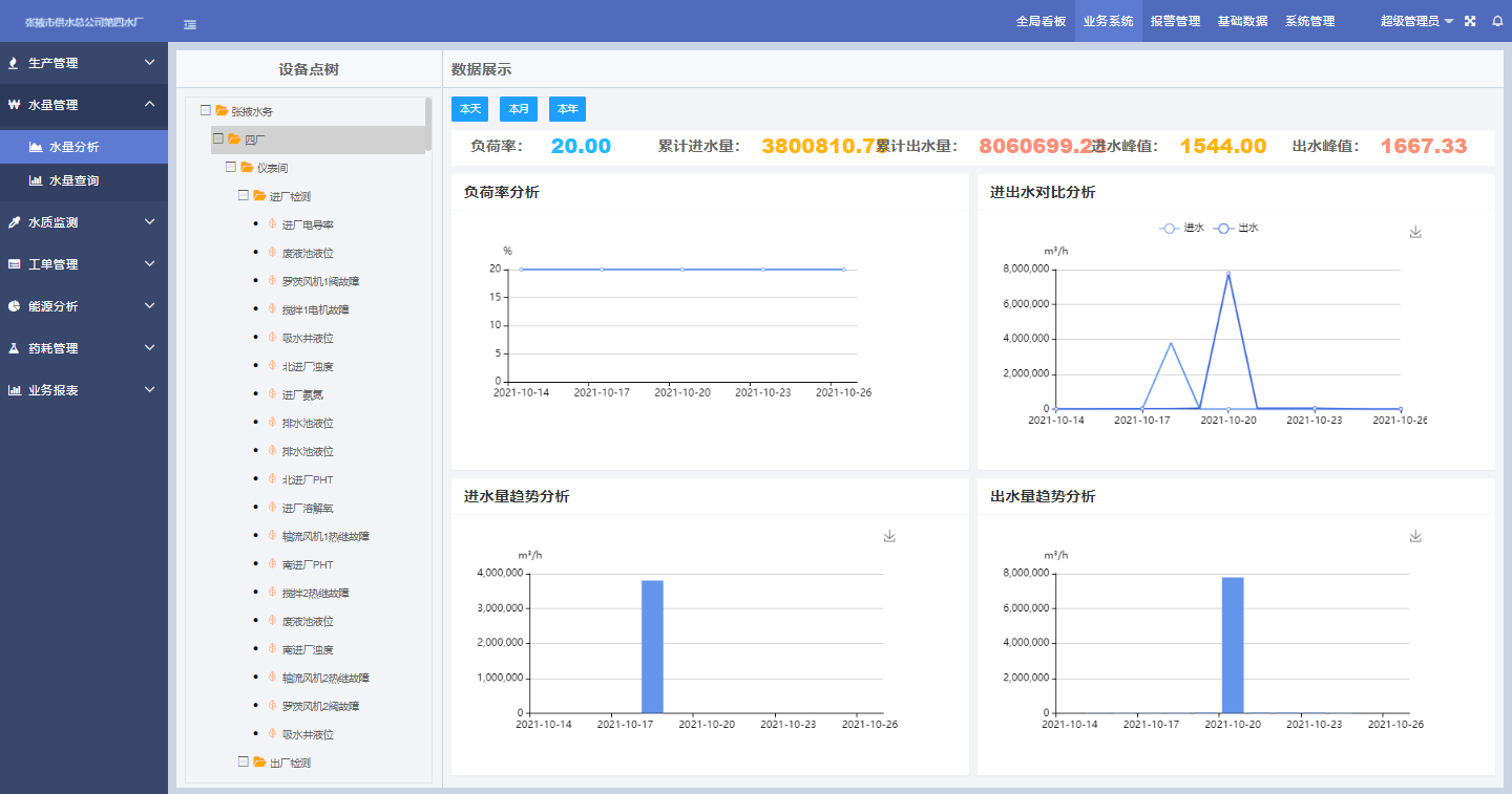 對水廠水處理量進行實時統(tǒng)計,管理人員可以通過曲線或報表等形式了解水廠在不同時間段或日期生產(chǎn)數(shù)據(jù)。